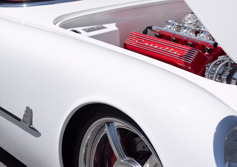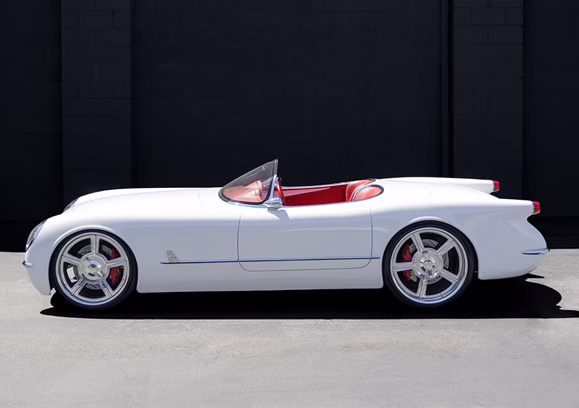 CF1 #001 was inspired by the very first Corvette in 1953, and we chose to do the original color combo of White exterior and Red Interior.